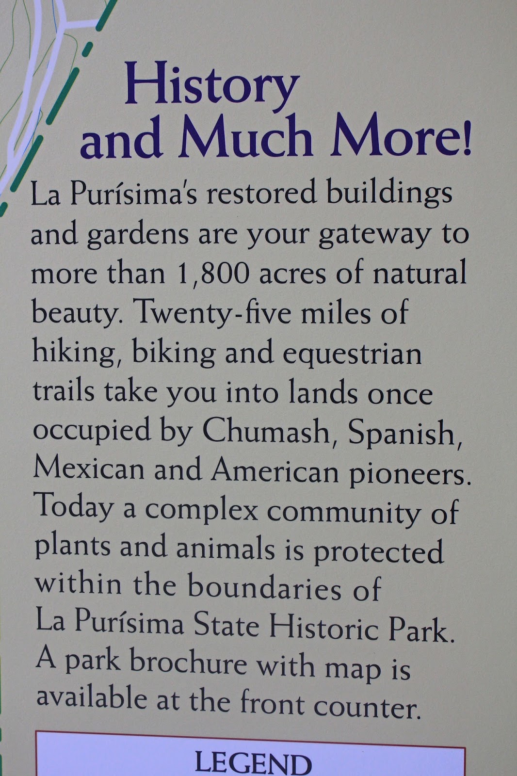"Inside this building are the apartments, work rooms and barracks of the mission's work force. The soldiers stationed at La Purisima were responsible for enforcing Spanish law and protecting the mission. Their lives became very difficult when Spain refused to pay them during the Mexican Revolution."